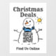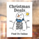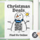 Christmas QR Code Window Sign. Find us online. Image is a Snowman with QR Code. Christmas Deals.