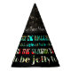 Shine bright this Christmas with a colourful party hat. The fun hat is black with a faux sparkle look at the top. Below this, words from "Deck the Halls with Boughs of Holly" adorn the hat in vibrant colours in a groovy font. Personalise with your own custom text around the centre for the finishing touch.