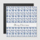 watercolor painting of a beautifully decorated snowman in Delft Blue colours