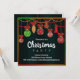 A festive Christmas party invitation featuring hanging Christmas decorations and Christmas tree ornaments in red, gold and green in a colourful frame made of Christmas colours, all set on a dramatic black background to make the ornaments really pop. All details can be customised to suit your own celebration.