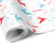 Cute and modern Christmas wrapping paper featuring a Christmas winter deer pattern in blue, red and pink on the white background in the simple Nordic style. Easily personalise the text. - Kate Eden Art