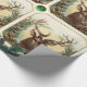 CHRISTMAS DEER,PINE CONES CROWN,GREEN GEMSTONES WRAPPING PAPER