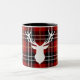 Classic Christmas and Winter Holidays themed Two-Tone Coffee Mug. White Deer on the Red Plaid pattern.