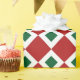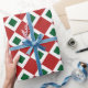 A classic graphic pattern of interlocking red and white diamond shapes. Each white diamond contains a small green diamond adding contrast to the original design. The red and green is perfect for Christmas!