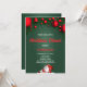 Here is a pretty holiday party invitation with your party information in white . The top have a border of green boughs and red holly berries.