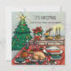 Featuring a cartoon style illustration of a sit down Christmas dinner with all the trimmings, including a roast turkey, cake, pigs in blankets and roast potatoes. You can customize the text to suit your needs!