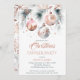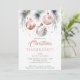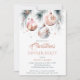 Christmas dinner party boho metallic silver rose gold watercolor template invitation instant download, pine branches with rose gold baubles snowflakes