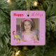 Christmas Dinosaur Personalized Photo Pink Ceramic Ornament