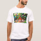 Celebrate the season with prehistoric style! This fun and festive Christmas t-shirt features a group of colourful dinosaurs wearing Santa hats, surrounded by holiday presents in a tropical jungle. The front design includes the cheerful phrase "Merry Rex-Mas!", with space below to add your family name or custom message — both lines are fully editable.