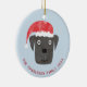 Cute and adorable black dog in a red Christmas Santa hat. Change the family name, date and text to personalise. Original art by Nic Squirrell.