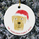Cute and adorable dog in a red Christmas Santa hat. Change the family name, date and text to personalise. Original art by Nic Squirrell.