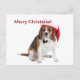 Merry Christmas postcard with beagle wearing a christmas hat