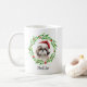 Holiday coffee mug with a watercolor Shih Tzu and watercolor Christmas wreath design. Add the dogs name to the coffee cup and it's the perfect gift idea for that puppy dog lover you know, or yourself!