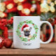Holiday coffee mug with a watercolor French Bulldog and watercolor Christmas wreath design. Add the dogs name to the coffee cup and it's the perfect gift idea for that Frenchie lover you know, or yourself!