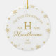 Modern elegant chic Gift for Couples and Newlyweds. Add your personal photo at the front and your Couple Monogram at the back with the est. Date on white. Decorated with golden snowflakes. A great gift for newly-weds, couples, anniversary gift, Christmas or birthday gift.