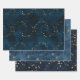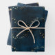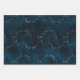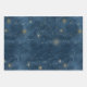 Elegant festive luxury chic Christmas Gift Wrapping Sheets in dark blue tones with gold - coloured (no real gold effect) stars pattern.