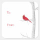 Christmas Elegant Red Cardinal Winter Birch Tree Square Sticker