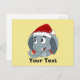 Personalised design with illustration of a head of cute little elephant with Santa's hat, Christmas holidays design for children,illustrated by Radka Kavalcova