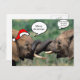 Christmas Elephant talking to another Elephant standing in front of him with there trunks wrapped together and a green grass background.with Merry Christmas in black text. and season greeting