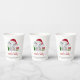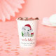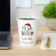 Cute Christmas holiday season paper cups for your baby boy shower with "Santa Baby" in a red script with swashes and a watercolor illustration of a baby boy elephant wearing a Santa hat with a Christmas tree, red and green candy cane and presents. Add the mother-to-be's name and shower date in simple modern typography.