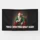 A portrait picture from Donald Trump sitting in a brown leather chair wearing a Christmas elf costume