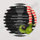 Round menu cards feature elf legs in striped tights and green boots on black and white stripes and gold dots and your details in chic white lettering. Perfect for a Christmas holiday party, wedding reception, wedding rehearsal dinner, anniversary party or any special event with a sit down dinner. Easily personalise with your dinner menu and details. LOTS OF COLORS available in our store.