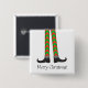Merry Christmas! A square button with a Christmas elf legs, chevron costume version. Customise the button with your own text among other options.