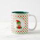 Christmas Elf on Green & Red Diamond Star Pattern Two-Tone Coffee Mug