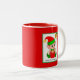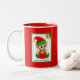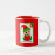 Cute Christmas elf with bells and gif on red Mug. Text can be personalised.