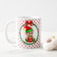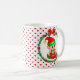 Christmas elf, pine wreath, red balls & hearts coffee mug