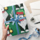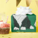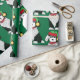 Cute Cartoon Black & White Sheepadoodle Puppy wearing green Elf hat and red elf collar. Adorable sheepadoodle green holiday wrapping paper!