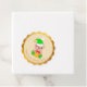 Christmas elf thank you on golden and beige round Favour Tag. Cute baby elf holding a gift box.