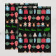 Christmas pattern with cute elves, Santa in his sleigh being pulled by reindeer along with ornaments and presents and Christmas Trees