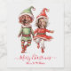 Cute dancing christmas elves couple classic round wine labelr with place for 2 photos. Personalize with photos and names.