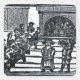 English School's Christmas Entertainment, an illustration from 'A Book of Roxburghe Ballads' (woodcut) located at a Private Collection. The Christmas Entertainment, an illustration from 'A Book of Roxburghe Ballads' was created around the 17th century.