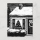 Christmas Eve House Tree in Window Black & White Postcard