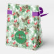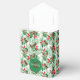 Christmas evergreen and pinecones pattern over a white background, traditional holiday colours. Custom monogram over a green circle.