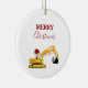 Christmas Excavator Construction Truck Ceramic Ornament