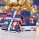Text can be added anywhere on wrapping paper. Choose your favourite font colour, size, and style.