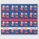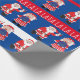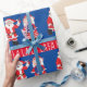 Fa, la, la, la, la with Santa and Mrs. Clause. With a blue background and stripes, this decorative wrapping paper is perfect for all your Christmas gifts.