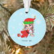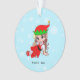 Cute Christmas fairy elf holding a star on light blue background. Text can be personalised.