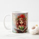 We love this mug which a pair of beautiful fairies holding books. They have beautiful green eyes and their hair is adorned with poinsettias, holly berries, and holly leaves. Their wings are made of lace.