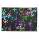 Christmas falling various neon colours snowflakes SlipperyJoe artistic gay pride gifts LGBTQIA dark background vibrant winter vibrant colourful digital illustration blue green pink yellow multicolored bokeh lights festive lively atmosphere depth dimension hanging thin lines black background