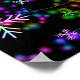 Christmas falling various neon colours snowflakes SlipperyJoe artistic gay pride gifts LGBTQIA dark background vibrant winter vibrant colourful digital illustration blue green pink yellow multicolored bokeh lights festive lively atmosphere depth dimension hanging thin lines black background