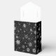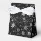 This favour box is shown in a festive Christmas holiday snowflakes print in the colour black.