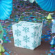 This favour box is shown in a festive Christmas holiday blue snowflake print.