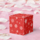 This favour box is shown in a festive Christmas holiday snowflakes print in the colour red.