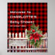 Christmas Fence Buffalo Plaid Baby Shower Welcome Poster