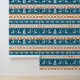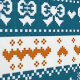 Christmas festive pattern composed of several horizontal bands. The colour palette includes deep teal, white, and warm shades of orange
