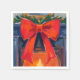 Christmas Fireplace | Red Bow Merry Watercolor Napkin